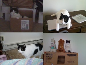As you can see from some of these picture collages, Spot had a tendency to pose with a computer. Whether behind it, or to the side of it on a printer or even on top of a computer, he knew how to get her attention. He was brave enough to tell her she wasn’t allowed on the computer all day. I never would have said anything.
