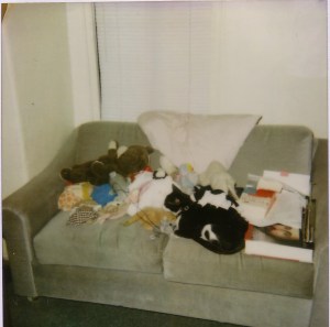 She was one who would get out stuffed animals and make them play with me! I didn’t understand at first. That is until she finally told me and showed me that those kinds of animals couldn’t move on their own. She held one that was very much like a black cat. She held it up in the air while we stood on the floor. Then she let go and the black cat fell straight down to the floor and just laid there. I watched the cat closely as it fell. This was the same cat that I had smacked on its forehead and there was no response from the cat.