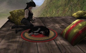 A picture my girl took while in Second Life as her alter ego and a giant me…
